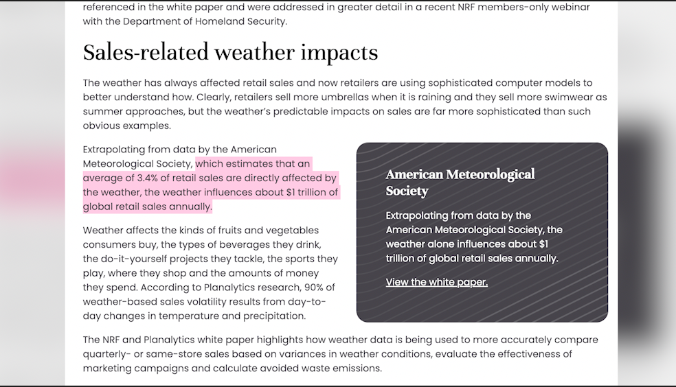 A screenshot from The National Retail Federation website illustrates the impact of weather on sales.